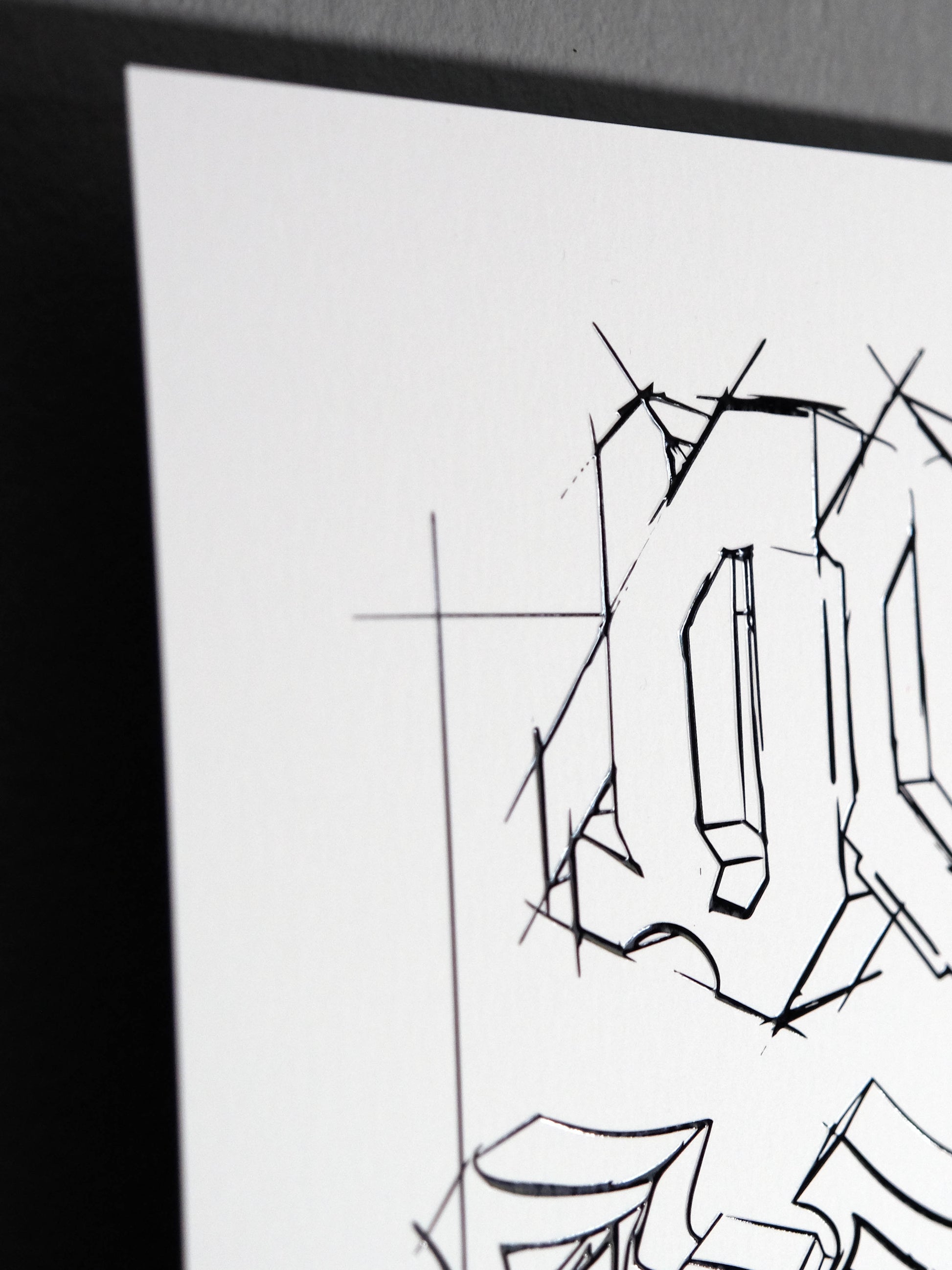 The sketches on the white print are always visible no matter the light conditions and the angle but the scribbles still retain that 3D look and feel.